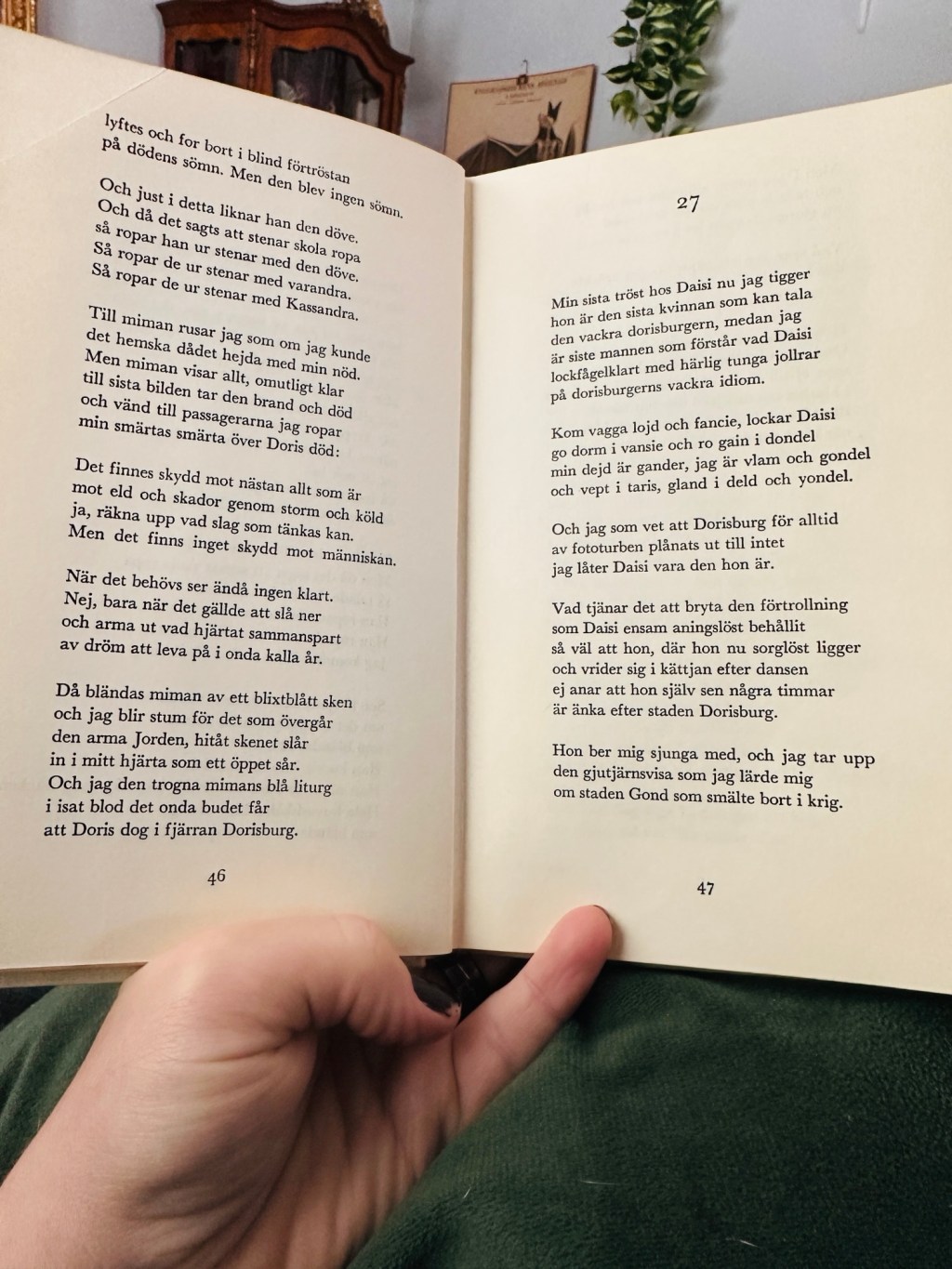Martinson förenar vetenskap, astronomi, med existentiella frågor och samhällskritik, vilket jag tycker är ett spännande koncept. Med tanke på att världen just nu återigen befinner sig i gränslandet mellan krig och fred samt att vi står i en begynnande klimatkris, så känns Aniara och Harrisons tankegångar otroligt aktuella.
