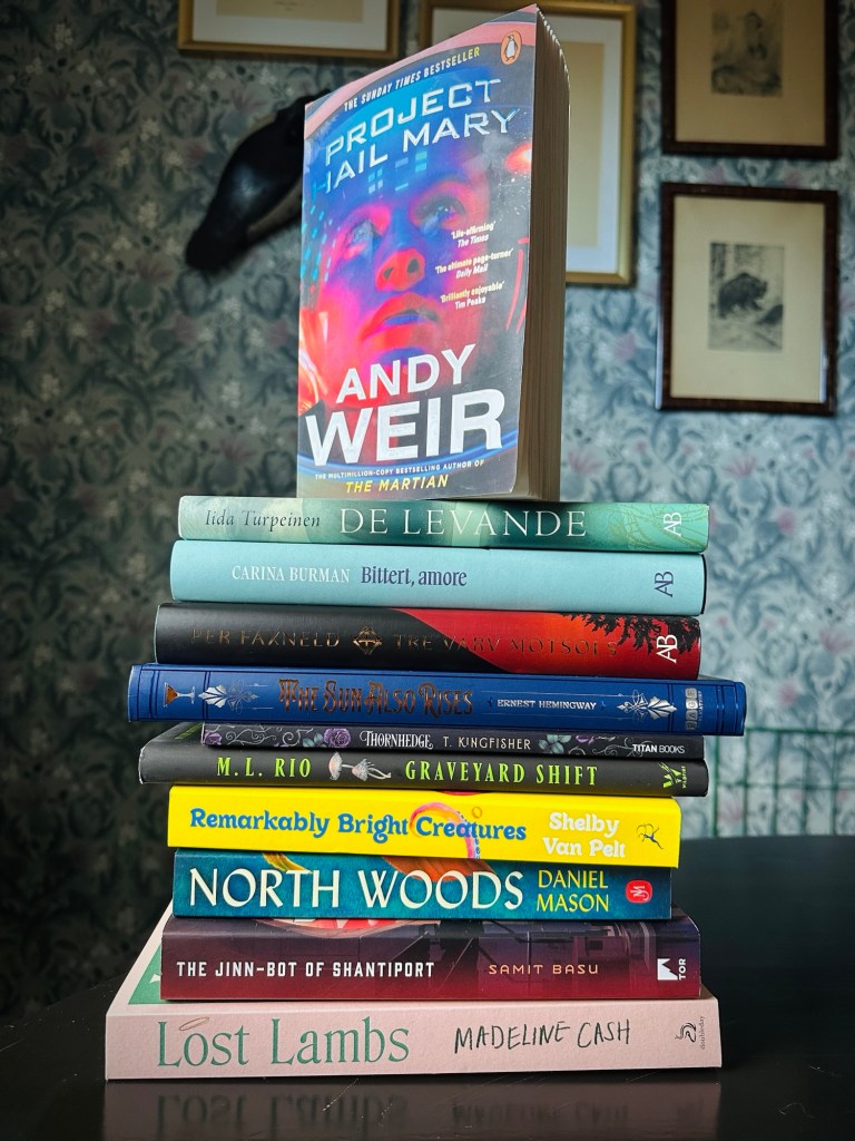 Här har vi min tbr-hög för våren. Jag har försökt att välja med omsorg, men det finns ju så många spännande böcker att välja mellan. Är det rimligt att jag kommer att hinna läsa alla dessa innan juni? Troligtvis inte. Är det troligt att jag kommer att hålla mig till de här titlarna? Nope. Men AMBITIONEN, ja den, den finnes.