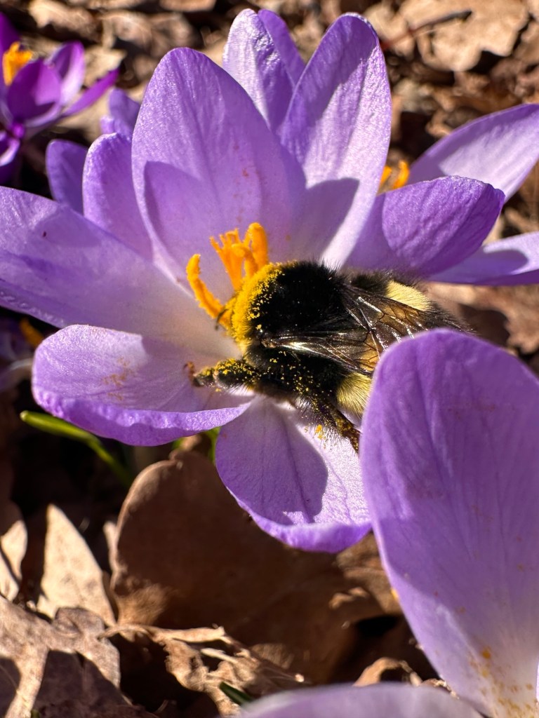 Vårens intåg. Det är så fascinerande att se hur det gradvis händer mer och mer i naturen. Helt plötsligt är det lila blommor som poppar upp överallt bland torra löv och grått gräs och i träden sitter nyanlända småfåglar och kvittrar från tidig gryning till skymning. Underbart!