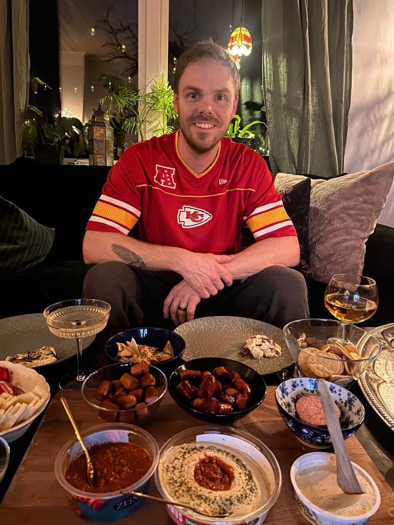 Jag och Marcus dukade upp en riktig girl dinner med bara en massa goda saker. Ostar, kex, dipp, korvar och bubbel i glasen. Vardagsfestligt helt enkelt.