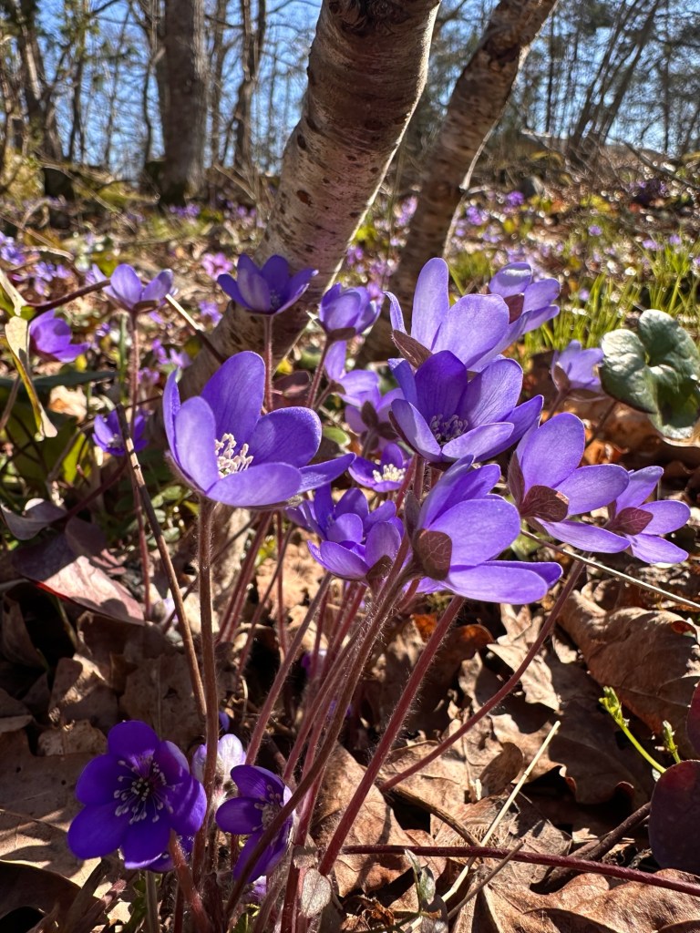 Blåsipporna blommar för fullt nu. De är ju fridlysta (lite olika regler beroende på var i landet man befinner sig), men här frodas de. En liten sak som gör mig lycklig.