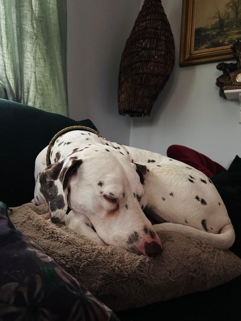 En annan kille som håller på att tappa vinterpälsen är Robin, vilket innebär att dammsugaren går varm. När vi hämtade honom hos uppfödaren kallade hon fällningen för ”dalmatiner-glitter”. Gulligt.
