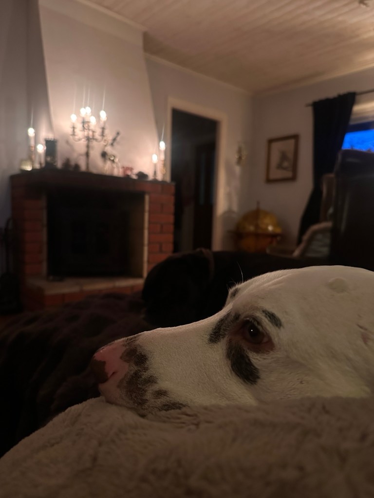SNÖ. För ovanlighetens skull, så har vi snö – och faktiskt ganska mycket. Nu har det visserligen till stora delar förvandlats till is, men ändå. I skogen ligger det fortfarande ett hyfsat täcke och det piggar verkligen upp. Älskar snö.
